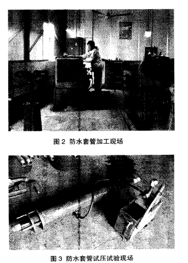 與現(xiàn)有技術(shù)相比,本次研究發(fā)明的防水套管止水效果好,首次使用在非金屬管穿底板上,并且效果顯著。防水套管加工現(xiàn)場如圖2所示。